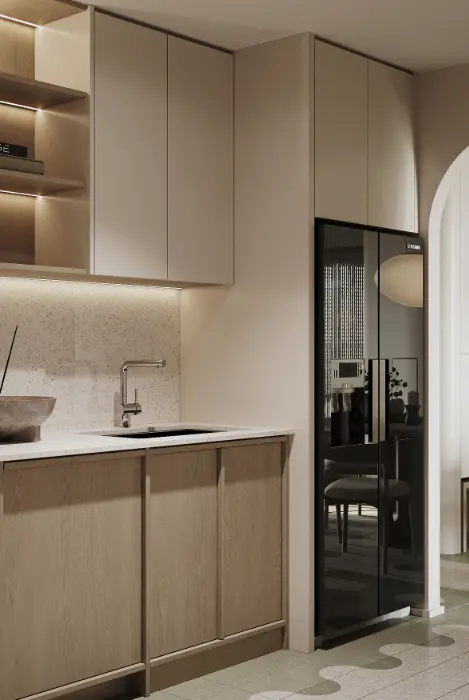 Tông màu trắng kem mix xanh cây đậm không chỉ tạo không gian thanh lịch mà còn hợp mệnh Mộc, mang lại sự cân bằng và tài lộc cho gia chủ. Đây là tổ ấm lý tưởng, tiện nghi và ấm cúng, dành riêng cho các cặp vợ chồng trẻ, nơi mỗi góc nhỏ đều là nguồn cảm hứng.