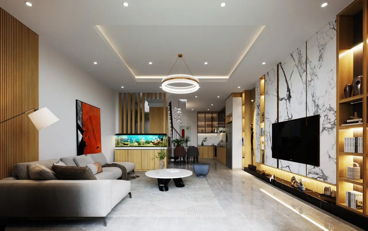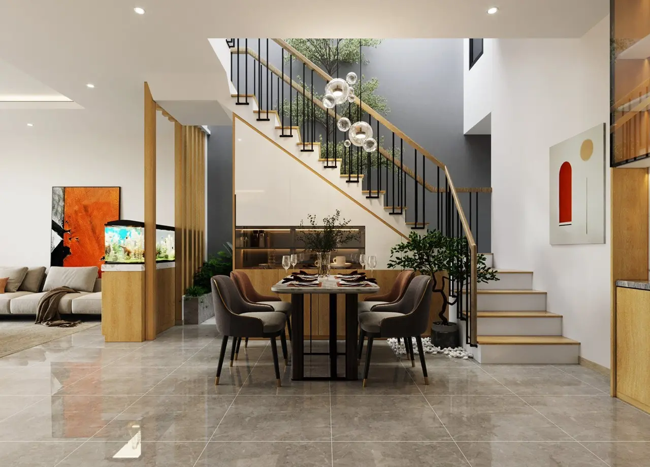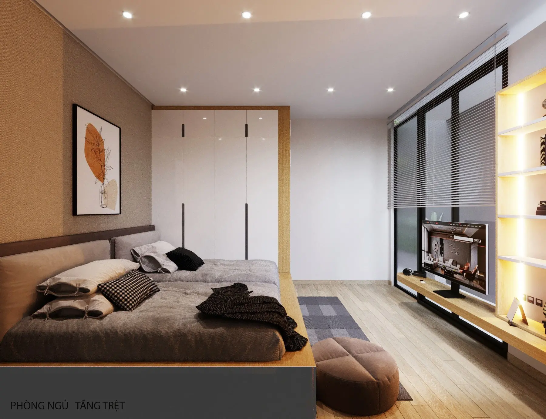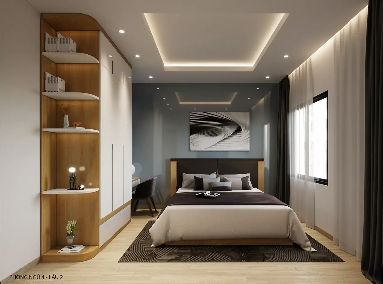 Dự án thiết kế nội thất nhà phố 4 tầng của anh Hiếu tại Quận 9 là một ví dụ điển hình của sự sang trọng, tiện nghi và gu thẩm mỹ độc đáo. Với phong cách hiện đại, ngôi nhà 4 phòng ngủ toát lên vẻ đẳng cấp qua việc sử dụng gam màu trầm ấm.