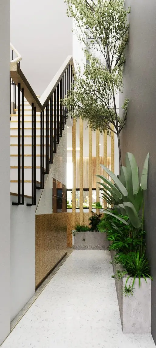 Sự kết hợp tinh tế giữa sắc màu tối và cây xanh trong nhà đã tạo nên một không gian sống cân bằng, vừa riêng tư, cá tính, vừa gần gũi và thoáng đãng. Đây là tổ ấm lý tưởng, không chỉ đáp ứng mọi nhu cầu sinh hoạt mà còn là nơi thể hiện trọn vẹn phong cách sống đẳng cấp của gia chủ.