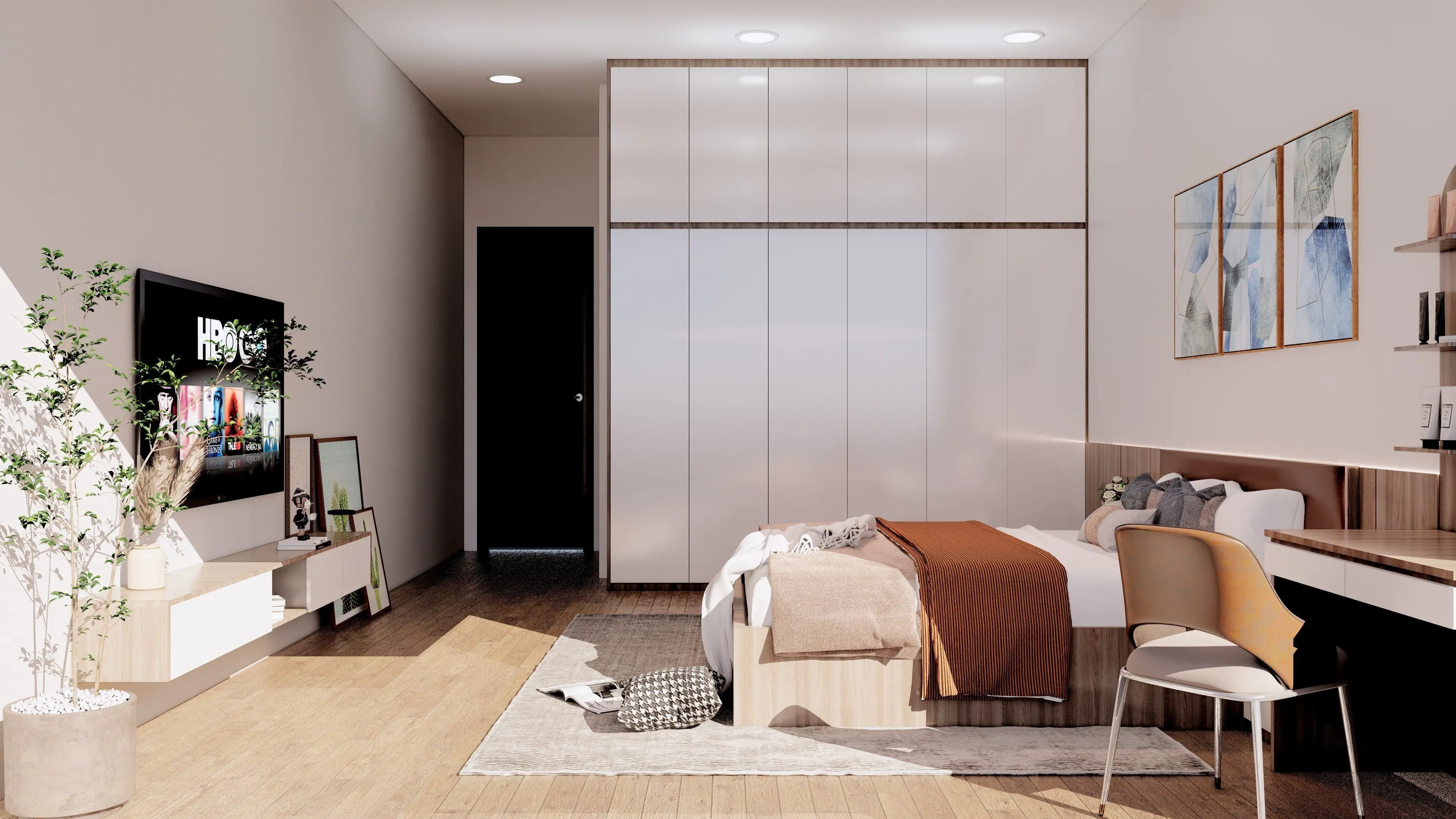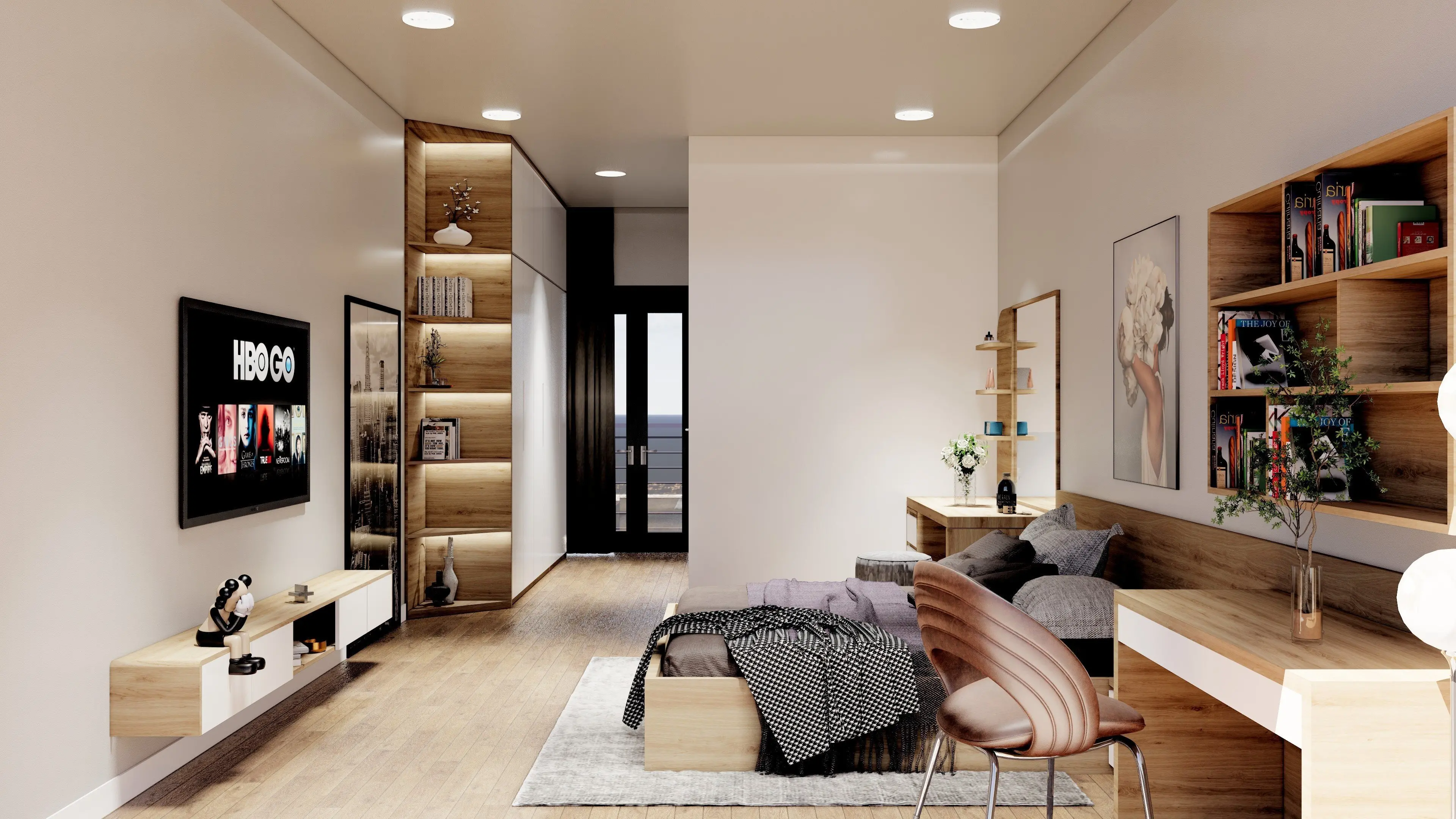 Sự kết hợp giữa các gam màu trung tính, vật liệu cao cấp và ánh sáng tự nhiên tạo nên một không gian sống ấm cúng, thanh lịch và đầy cá tính. Đây không chỉ là một tổ ấm lý tưởng mà còn là nơi thể hiện trọn vẹn gu thẩm mỹ độc đáo và đẳng cấp của gia chủ.